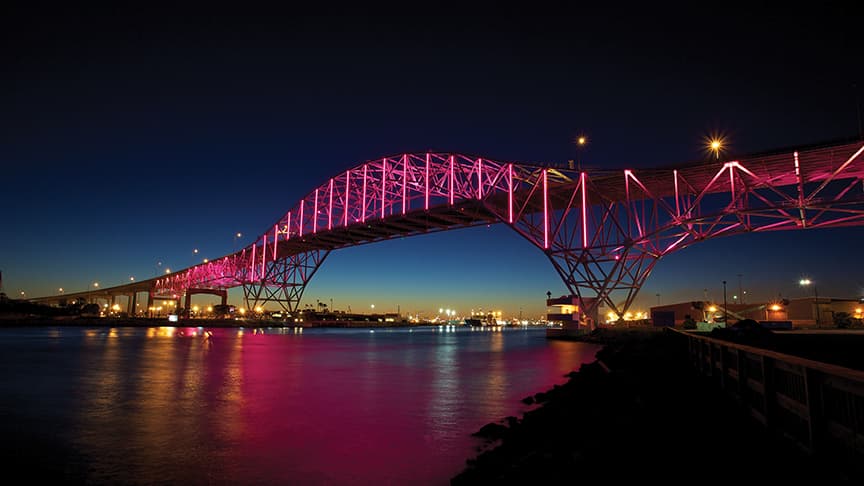Signify 为城市和基础设施所有者提供兼具耐用性、能源效率和先进控制的桥梁照明。 从突出建筑细节到优化运营,我们的互联系统可保障可靠性能、降低运营成本、助力实现可持续发展目标,将桥梁打造为标志性地标。