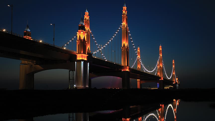 我们通过突出结构、质感和设计特色的照明,帮助城市将桥梁改造成视觉地标。 借助先进 LED 技术与色彩控制系统,我们的解决方案可打造引人注目的夜景,改善城市环境,同时与城市建筑特色相得益彰。